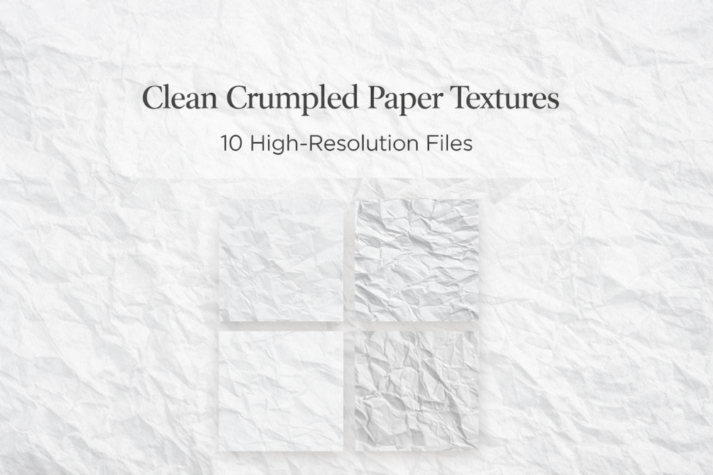 A clean and minimal pack of crumpled paper textures with natural folds and soft shadows.